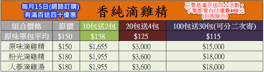 雞精一般10包送2包(單包150元/150cc)